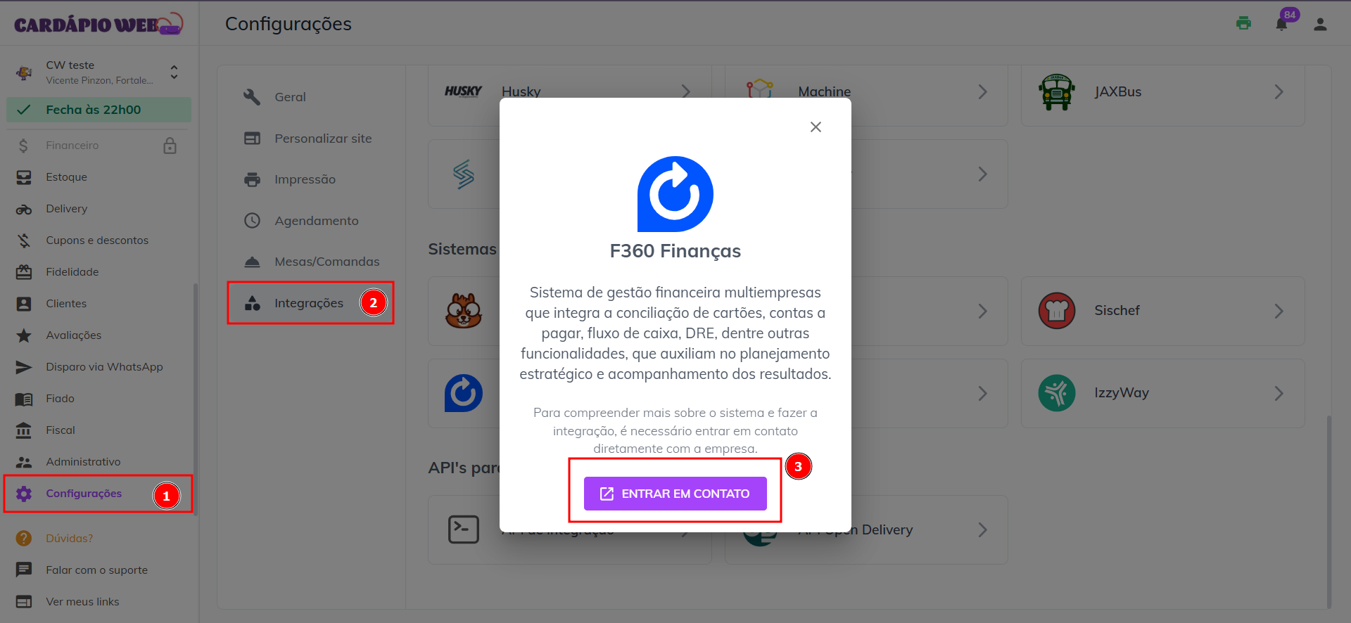 Em seguida, entre em contato com o time da F360 para concluir a integração!🚀✨
