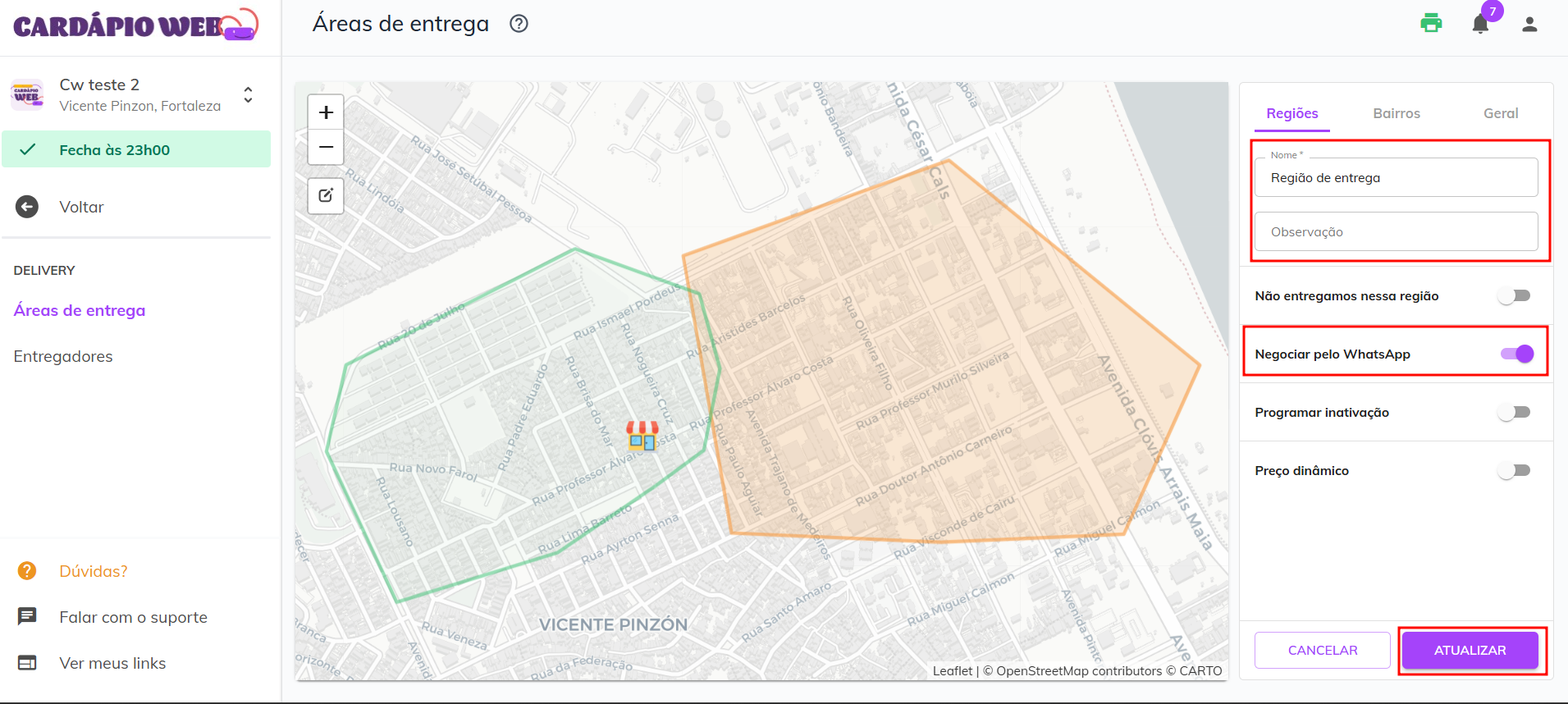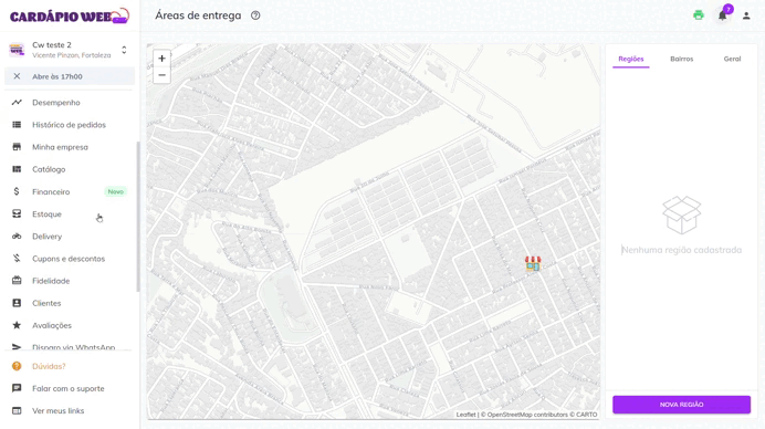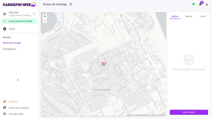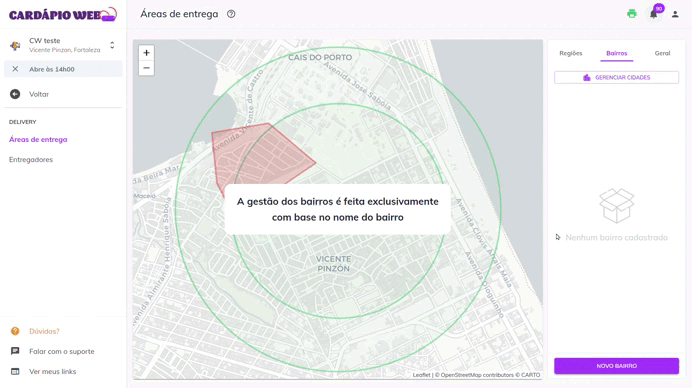 Para configurar áreas de entrega por bairros, siga os passos abaixo:
