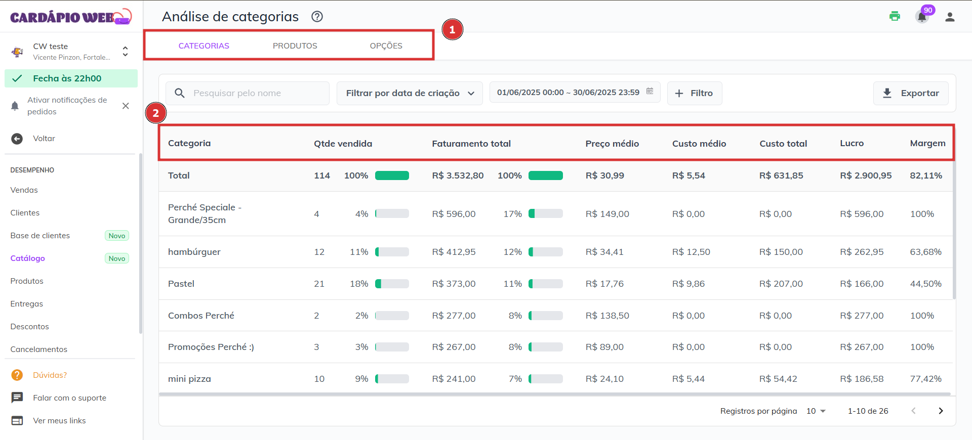 **🟪 Visão por categorias, produtos e opções**