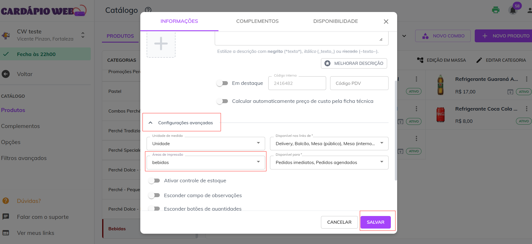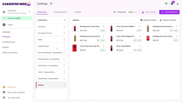 Se desejar que todos os produtos de uma categoria sejam impressos no mesmo setor, siga os passos abaixo: