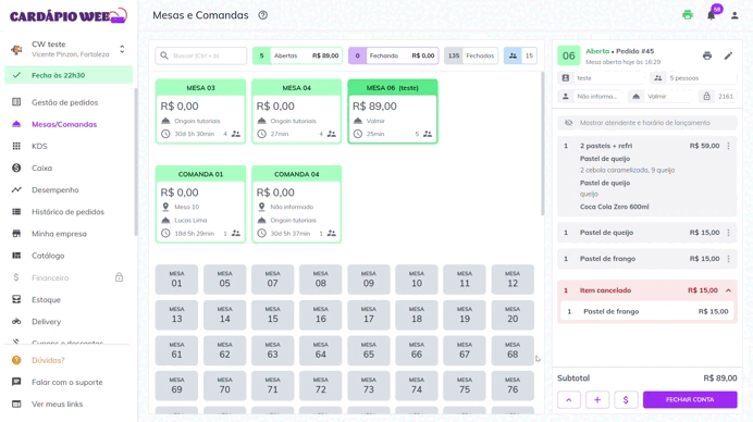 1. No menu lateral esquerdo, clique em **Mesas/Comandas**.