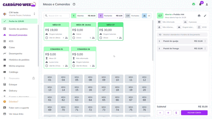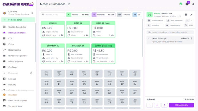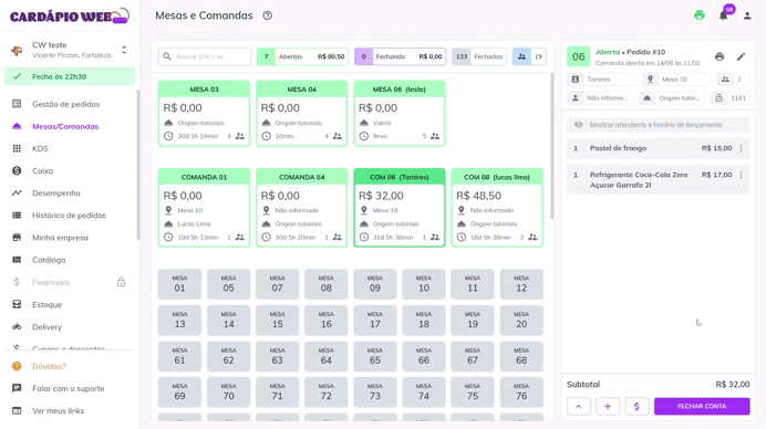 * Abrir mesas ou comandas