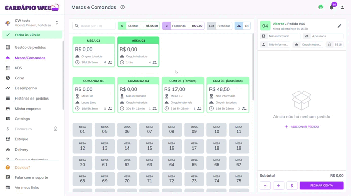 Para abrir uma mesa no sistema, siga os passos abaixo: