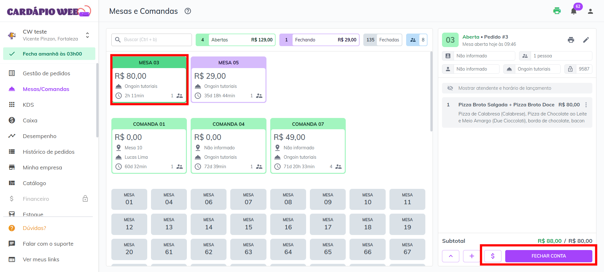 Para realizar o fechamento de uma mesa no sistema, siga o passo a passo abaixo: